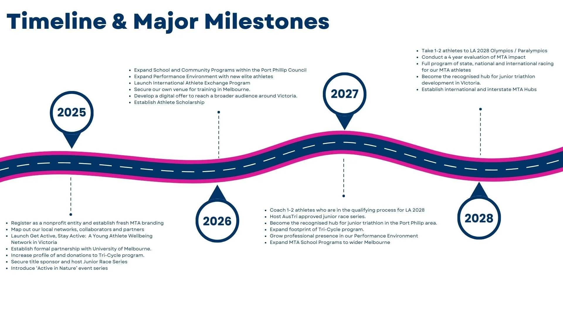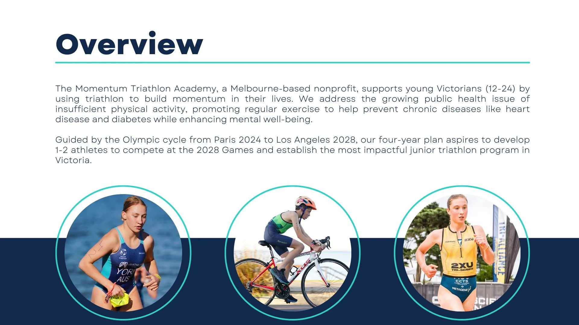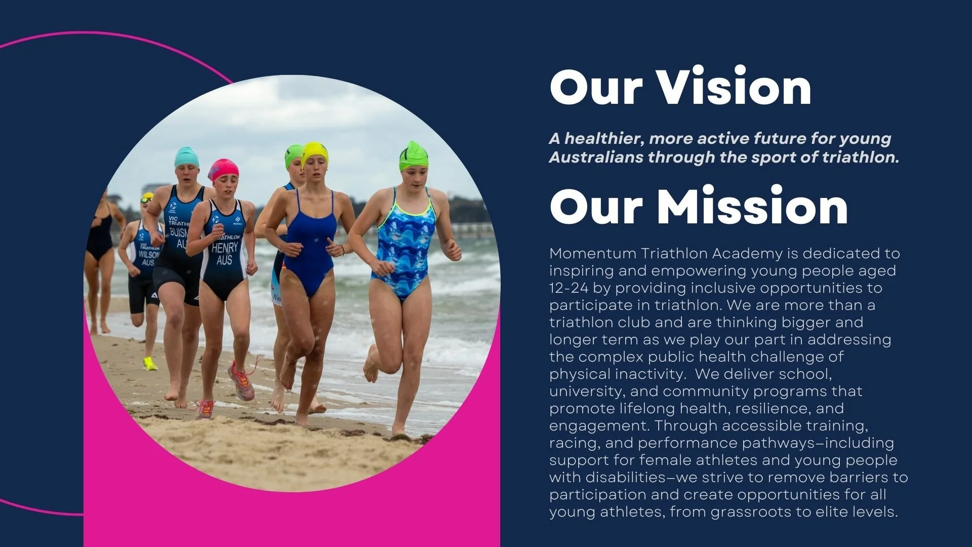 We're excited to share our first-ever Strategic Plan (2024–2028), a bold, four-year vision for the Momentum Triathlon Academy that reflects our commitment to inspiring, empowering, and supporting young people aged 12–24 through the sport of triathlon.
